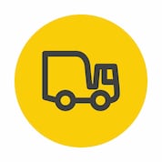 The roundel then splits off into sections, leaving a front facing red truck being made by the orange robotic arms. There are two blue lines making circular motion on the screen surrounding the machinery and truck. There are bubbles of lubricant floating around the truck and finally a blue roundel appears on the screen with 3 grey cogs spinning. This roundel then fills up with yellow fluid.
