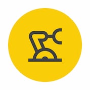 A zoom in to the robotic arm section of the roundel – the robotic arm is making up and down movements. Then in a clockwise motion a van appears. The roundel continues to spin in a clockwise motion then a red tractor appears making back and forth movements. The roundel then spins a final time to show the grey setting wheel – the wheel is spinning.